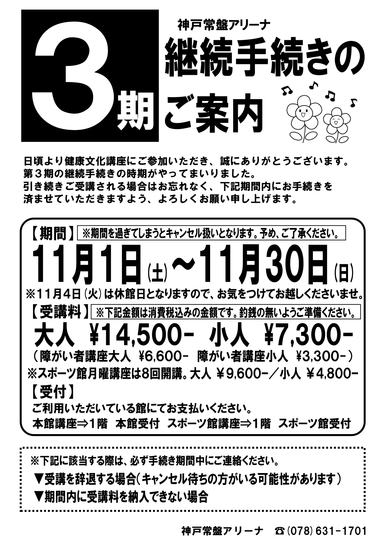 ※ 健康文化講座 第3期 継続手続きのお知らせ (10/23更新)※