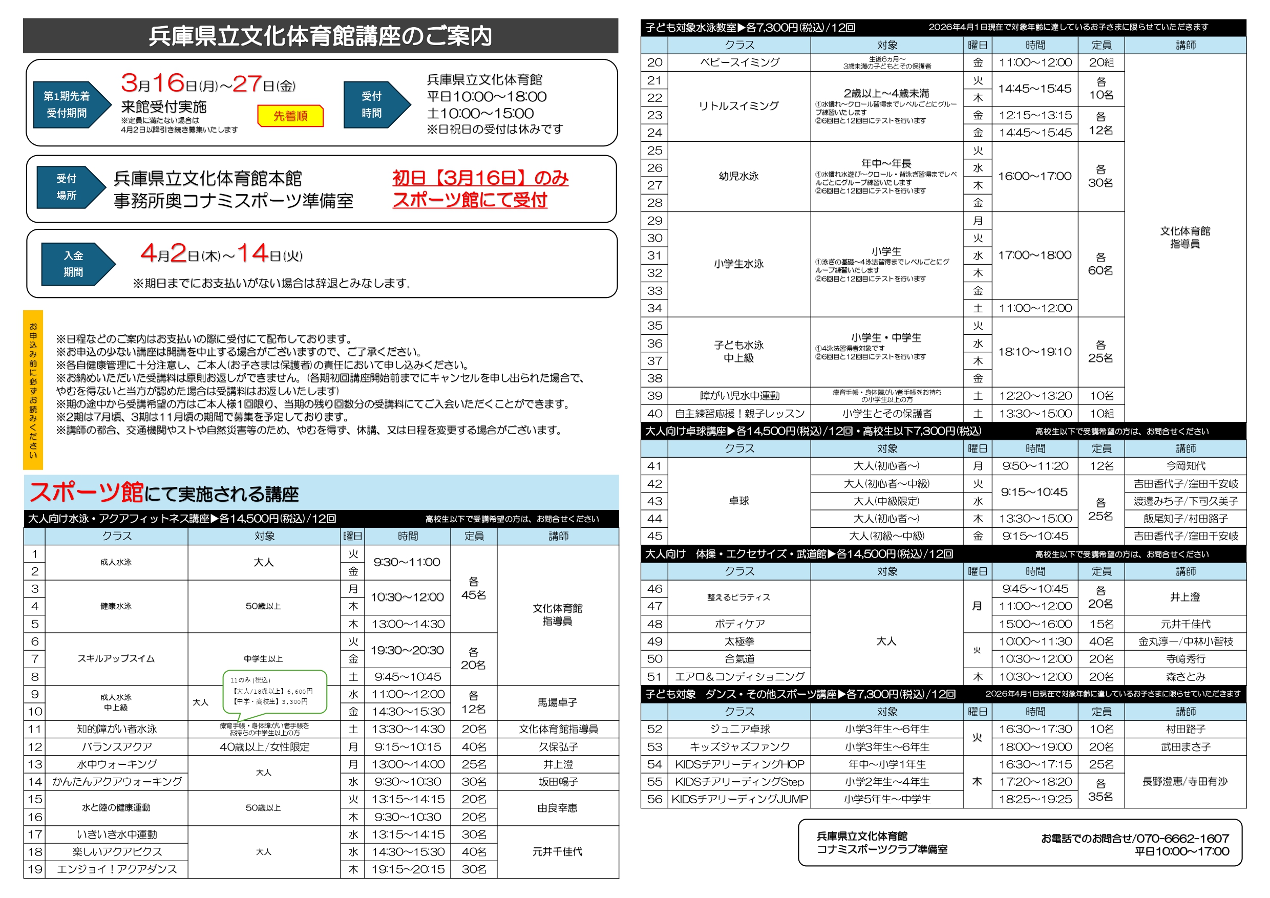 ※3月22日以降は本館コナミスポーツ準備室にて受付します。